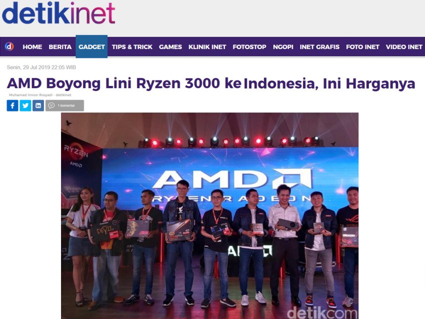Di samping itu, AMD juga mengumumkan bahwa pihaknya turut membawa Ryzen 3000 Series dengan Grafis Radeon anyar ke Indonesia. Fitur-fitur driver baru seperti Radeon Anti-Lag hingga dukungan Radeon FreenSync jadi beberapa keunggulan dari lini ini.